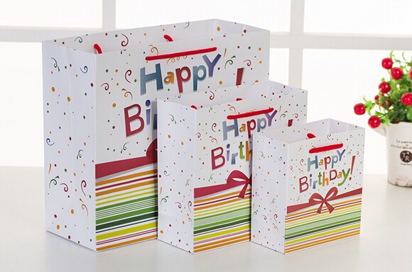 Happy Birthday精致化妝品白卡紙袋定制