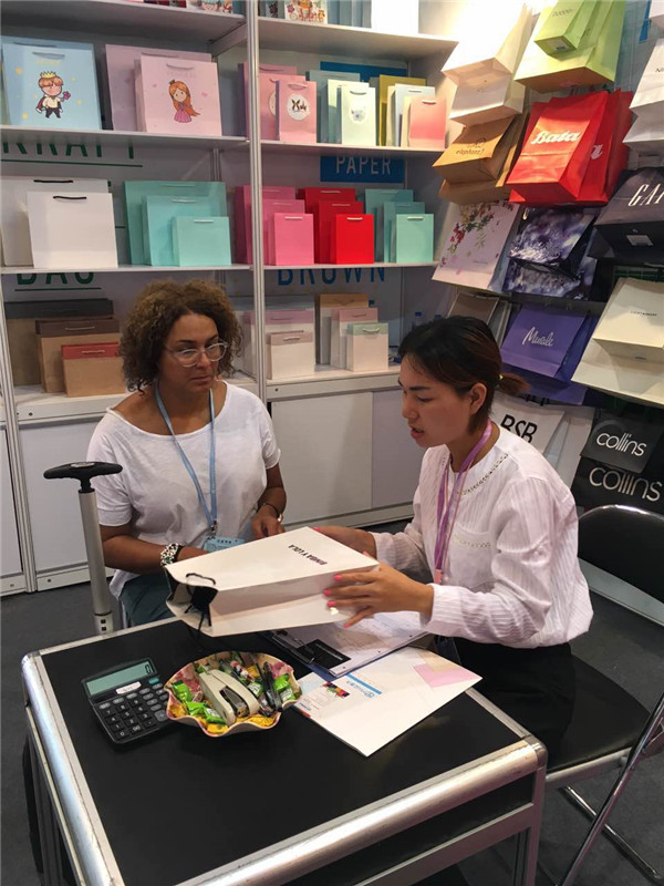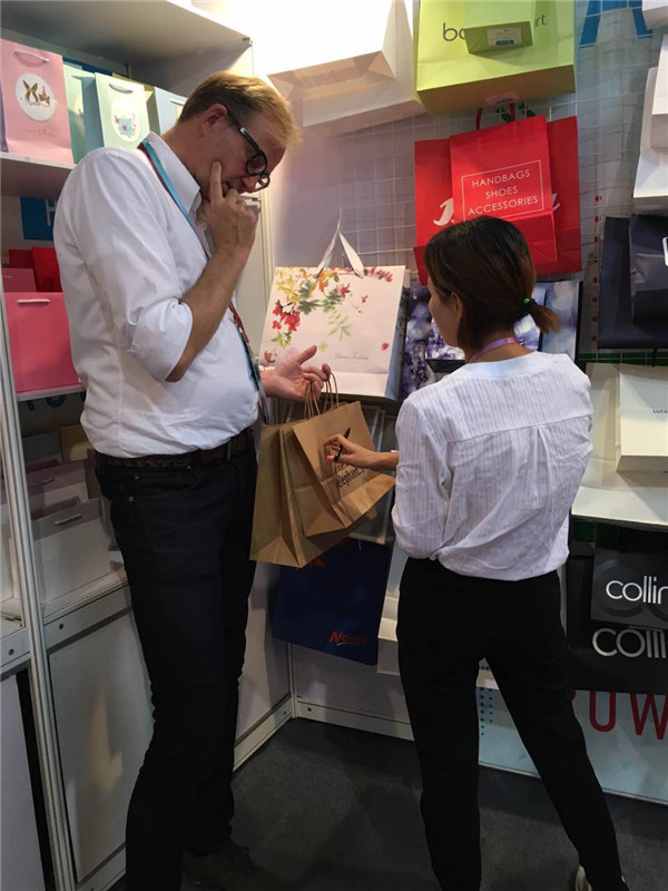 本次展會(huì)上海麥禾包裝展出的產(chǎn)品主要是各類紙質(zhì)包裝袋,主要有服裝袋、禮品袋、食品袋、打包袋等。